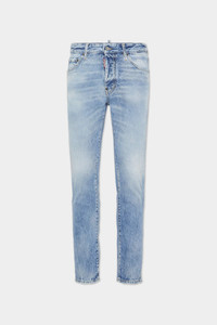 - PRODUCT ID : S74LB1745S30839470 - MADE FROM COTTON DENIM - LIGHT BLUE WASH - SLIM FIT - STRAIGHT LEG - FIVE-POCKET STYLE - WHISKERING EFFECTS - RED DSQUARED2 LABEL - DSQUARED2 PATCH PRIMARY FABRIC: 100% COTTON; POCKET LINING: 65% POLYESTER, 35% COTTON
