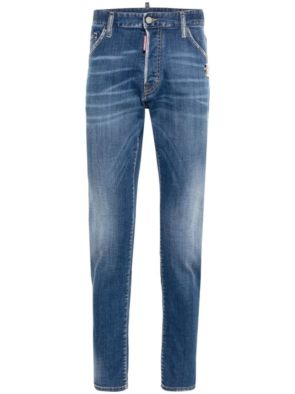 Cool Guy skinny-cut jeans Designed for a skinny fit, these stonewashed jeans by Dsquared2 are decorated with whiskering and a contrasting red logo plaque at the thigh. Highlights - Blue - Stretch-cotton - Denim - Stonewashed - Faded effect - Whiskering effect at the thighs - Logo plaque - Button fly fastening - Logo-embossed buttons - Belt loops - Classic five pockets - Skinny cut Imported Composition Lining: Polyester 65%, Cotton 35% Outer: Cotton 98%, Spandex/Elastane 2% SIZE & FIT Model measurements Height 6 ft 2 in(1.88 m) Bust/Chest 36.61 in(93 cm) Hips 35.82 in(91 cm) Waist 27.95 in(71 cm) FittingInformation Designed for a slim fit, these jeans offer a comfortable fit that sits just away from the leg Constructed from stretch denim, this piece offers a stretch fit with durability This piece fits true to size – take your usual size Washing instructions Machine Wash