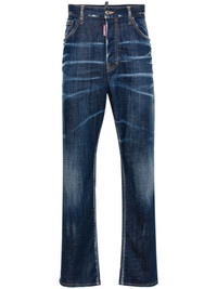 mid-rise skinny jeans Continuing the brand's love affair with lived-in denim, these navy-blue Dsquared2 jeans are cut to a slim-fit silhouette defined by distressed detailing and a pronounced whiskering effect. They're complete with a maple-leaf logo patch to the rear. Highlights - Navy blue - Stretch-cotton - Washed denim - Mid-rise - Skinny cut - Contrast stitching - Whiskering effect - Classic five pockets - Applique logo to the rear - Button fly fastening Made in Italy Composition Lining: Polyester 65%, Cotton 35% Outer: Calf Leather 100%, Cotton 98%, Elastane 2% SIZE & FIT Model measurements Height 6 ft 0 in(1.84 m) Bust/Chest 35.82 in(91 cm) Hips 37 in(94 cm) Waist 28.34 in(72 cm) FittingInformation Designed for a slim fit, these jeans offer a comfortable fit that sits just away from the leg Constructed from stretch denim, this piece offers a stretch fit with durability This piece fits true to size – take your usual size Washing instructions Machine Wash