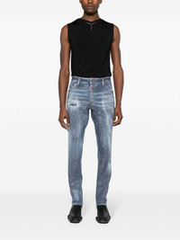 Cool Guy studded mid-rise slim jeans Highlights - Indigo blue - Stretch-cotton - Denim - Faded effect - Silver-tone stud embellishment - Distressed finish - Ripped detailing - Paint splatter detail - Whiskering effect at the thighs - Mini logo tag - Slim cut - Mid-rise - Button fly fastening - Belt loops - Classic five pockets - Straight hem Made in Italy Composition Outer: Aluminium 100%, Cotton 98%, Spandex/Elastane 2% Lining: Polyester 65%, Cotton 35% SIZE & FIT Model measurements Height 6 ft 2 in(1.88 m) Bust/Chest 36.61 in(93 cm) Hips 35.82 in(91 cm) Waist 27.95 in(71 cm) FittingInformation Designed for a slim fit, these jeans offer a comfortable fit that sits just away from the leg Constructed from stretch denim, this piece offers a stretch fit with durability This piece fits true to size – take your usual size