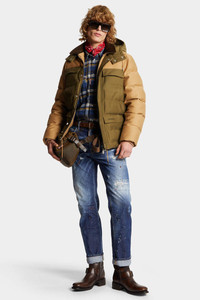 - PRODUCT ID: S74AM1503D35141726 - DOWN COTTON JACKET - FIT: REGULAR - CORDUROY COLLAR WITH HOOD - CONCEALED ZIP PLACKET WITH PRESS STUDS - LETTERING EMBROIDERY ON THE LEFT POCKET FLAP - FOUR FLAPPED POCKETS - RIB KNIT CUFFS - DRAWSTRING BOTTOM HEM - INNER LINING - MADE IN ITALY FABRIC 1: 100% COTTON PADDING: 90% DUCK DOWN, 10% DUCK FEATHER LINING: 100% POLYAMIDE This coat reinterprets the concept of the down jacket, shifting its imagery from the sporty to the casual world. The color blocking effect makes it possible to use it in a more casual way on looks that make everyday life the key feature.