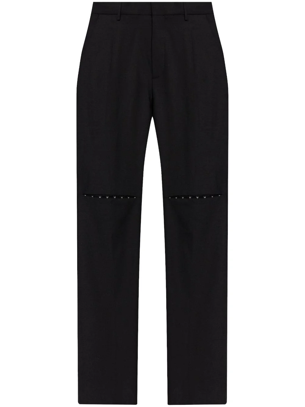 tailored trousers Highlights - Black - Concealed front fastening - Two side slash pockets - Belt loops - Cut-out detailing Made in Italy Composition Polyester 100%