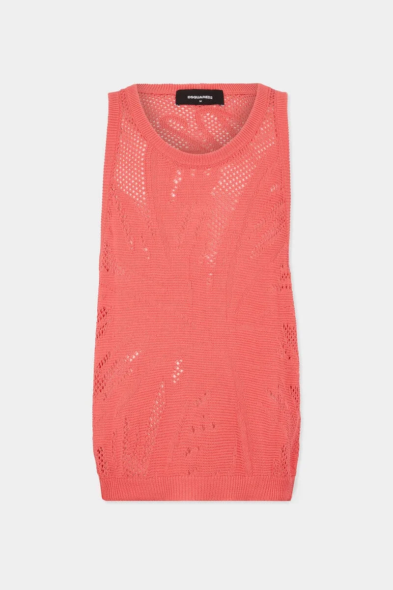 - PRODUCT ID : S74HA1588D13186312 - MADE FROM OPENWORK COTTON KNIT - SCOOP-NECK STYLE - RIBBED TRIMS - BACK JACQUARD LOGO PRIMARY FABRIC: 100% COTTON Defined by its tactile openwork design and playful palm tree motif, this tank top is finely knitted from breathable cotton. The signature logo on the back keeps it unmistakably Dsquared2.