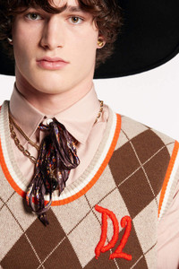 - PRODUCT ID: S74HA1358S18340961 - WOOL AND SILK BLEND VEST - ALL-OVER ARGYLE PATTERN - SLIM FIT - ROUND NECK - STRIPED RIBBED TRIMS - EMBROIDERED "D2" LETTERING ON THE CHEST - MADE IN ITALY 78% WOOL, 11% SILK, 11% POLYAMIDE-NYLON