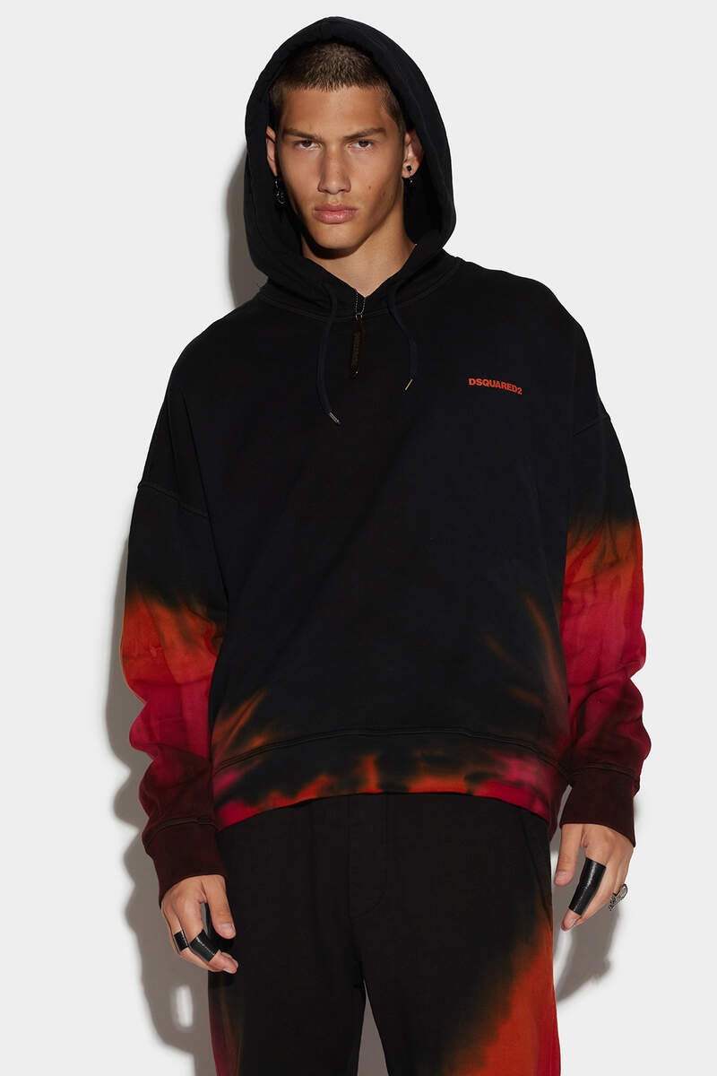 - PRODUCT ID: S74GU0668S25030962A - COTTON SWEATSHIRT - REGULAR FIT - TIE-DYE FLAME WASH - DRAWSTRING HOOD - MINI "DSQUARED2" CHEST PRINT - MADE IN ITALY PRIMARY FABRIC: 100% COTTON. SECONDARY FABRIC: 94% COTTON, 6% ELASTANE-SPANDEX This Dsquared2 men's sweatshirt exudes a rebellious Goth and grunge aesthetic, perfect for the maverick in the urban jungle. The oversized fit and all-over tie-dyed flame pattern make a bold statement, while the distinctive slouchy silhouette adds a laid-back touch. Pair with distressed jeans and combat boots for the complete look. Embrace your inner rebel and live dangerously in style with this standout piece.
