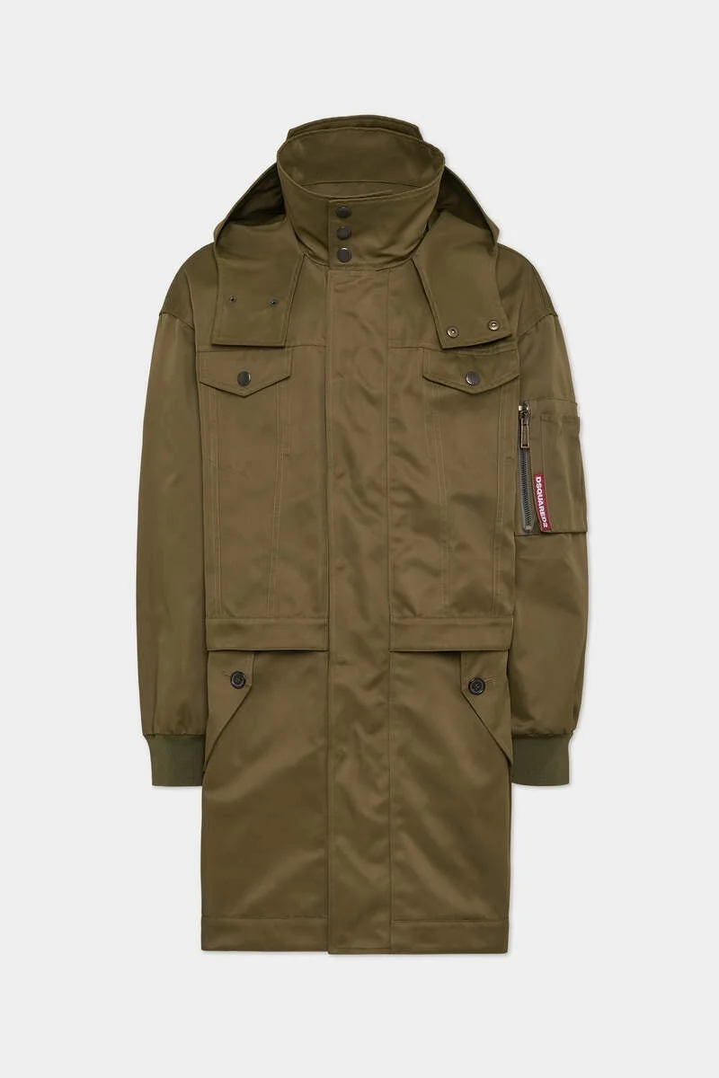 - PRODUCT ID : S74AH0115D35272707 - MADE FROM TECHNICAL TAFFETA - SNAP BUTTON STAND COLLAR AND HOOD - CONCEALED CLOSURE - UPPER SNAP BUTTON POCKETS - LOWER BUTTONED POCKETS - ZIP SLEEVE POCKET - RIBBED CUFFS - RED DSQUARED2 LABEL - DRAWSTRING FISHTAIL BACK HEM PRIMARY FABRIC: 100% POLYESTER; POCKET LINING: 100% COTTON; APPLICATION: 100% CALF LEATHER Amp up the urban energy in this hooded parka: an absolute essential in your cold-weather edit. Styled with a high neck to block out the wind and our iconic red Dsquared2 label on the sleeve pocket.