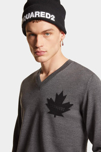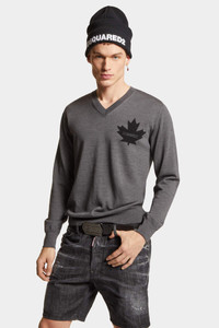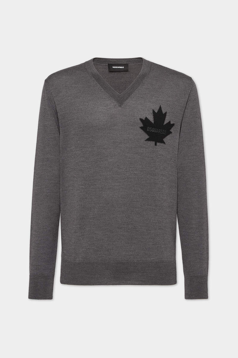 - PRODUCT ID: S74HA1487D13034963 - KNIT WOOL V-NECK PULLOVER - MAPLE LEAF INSET AT LEFT CHEST - RIB KNIT HEMS AND NECKLINE - FIT: REGULAR - MADE IN ITALY YARN: 100% WOOL What makes this pure virgin wool V-neck pullover special is the inlay work of the iconic Canadian maple leaf. Wear with a pair of jeans and under a sporty jacket.