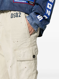 D2 Stamps cargo pants These D2 Stamps trousers are Dsquared2's take on classic cargo styles: they're fitted with multiple pockets and touch-strap cuffs for an adjustable fit. Paint splatters and logo detailing add signature character to the utilitarian-inspired silhouette. Highlights - Beige - Cotton - Twill weave - Paint splatter detail - Elasticated waistband with belt loops - Denim logo patch to the front - Two diagonal pockets to the sides - Two rear button-fastening jetted pockets - Two side cargo pockets - Tapered leg - Touch-strap elasticated ankles - Unlined - Spare button - Concealed fly and button fastening - Internal drawstring fastening waist Made in Italy Composition Cotton 100% SIZE & FIT Model measurements Height 6 ft 1 in(1.86 m) Bust/Chest 36.61 in(93 cm) Hips 37 in(94 cm) Waist 28.74 in(73 cm) FittingInformation Designed for a tapered leg, offering a loose unrestricted fit over the leg with a closer fit towards the ankle Adjust this piece’s waistband to your preference using the drawstring Made from a midweight non-stretch fabric This piece fits true to size – take your usual size Washing instructions Machine Wash