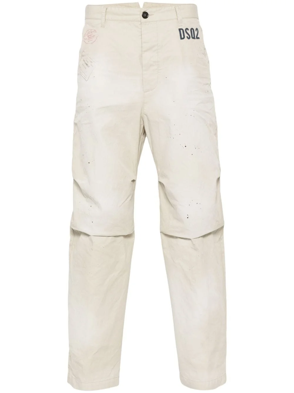 D2 Stamps Osaka straight-leg trousers With a splatter effect, these Dsquared2 D2 Stamps Osaka trousers are adorned with mail stamps on one side, and the brand's logo print on the other. Highlights - Beige - Cotton - Twill weave - Belt loops - Two diagonal pockets to the sides - Embroidered logo to the front - All-over graphic print - Straight leg - Two rear button-fastening jetted pockets - Concealed fly and button fastening Made In Italy Composition Outer: Cotton 100% Lining: Cotton 100% SIZE & FIT Model measurements Height 6 ft 2 in(1.87 m) Bust/Chest 36.22 in(92 cm) Hips 37 in(94 cm) Waist 27.95 in(71 cm) FittingInformation Designed for a tapered leg, offering a loose unrestricted fit over the leg with a closer fit towards the ankle Made from a midweight non-stretch fabric This piece fits true to size – take your usual size