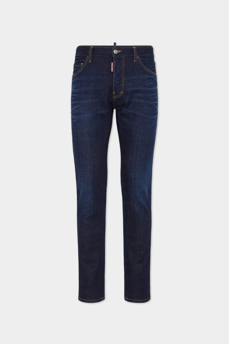 - MADE FROM STRETCH COTTON DENIM - DARK BLUE WASH - SLIM FIT - STRAIGHT LEG - FIVE-POCKET STYLE - WHISKERING EFFECTS - BACK DSQUARED2 PRINT - RED DSQUARED2 LABEL - DSQUARED2 PATCH PRIMARY FABRIC: 99% COTTON, 1% ELASTANE-SPANDEX; POCKET LINING: 65% POLYESTER, 35% COTTON; APPLICATION: 100% CALFSKIN No off-duty edit is complete without a straight-leg jean. This slim-fitting pair is branded with maxi Dsquared2 lettering across the bum for a daring look. Just add sneakers and a plain white T-shirt.