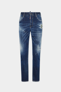 - MADE FROM STRETCH COTTON DENIM - DARK BLUE WASH - LOOSE FIT - FIVE-POCKET STYLE - DISTRESSED FINISH - WHISKERING EFFECTS - METAL STUDS - RED DSQUARED2 LABEL - BACK DSQUARED2 PRINT PRIMARY FABRIC: 98% COTTON, 2% ELASTANE-SPANDEX; POCKET LINING: 65% POLYESTER, 35% COTTON No off-duty edit is complete without a straight-leg jean. This pair toughens up the five-pocket icon with rips and splatters: just add a plain white tee and sneakers for an easy throw-on-and-go look.