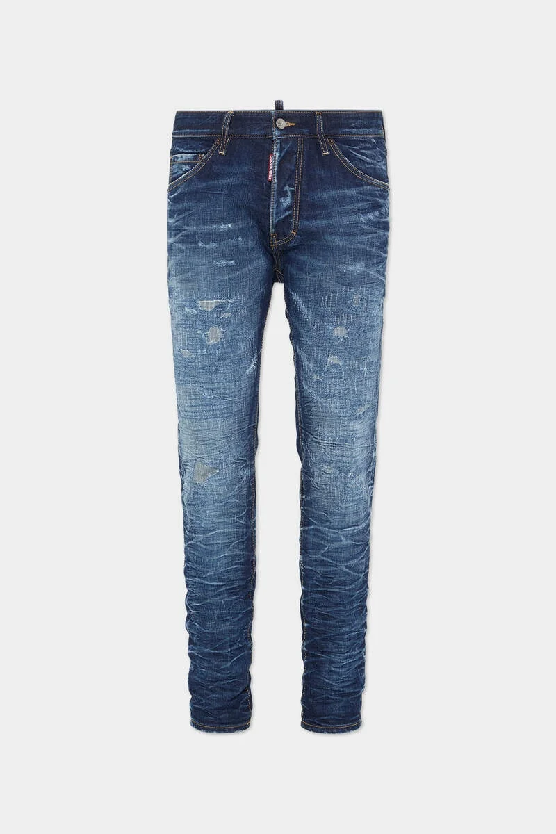 - PRODUCT ID : S74LB1776D30011470 - MADE FROM COTTON DENIM - DARK BLUE WASH - SLIM FIT - STRAIGHT LEG - FIVE-POCKET STYLE - DISTRESSED FINISH - RED DSQUARED2 LABEL - DSQUARED2 PATCH