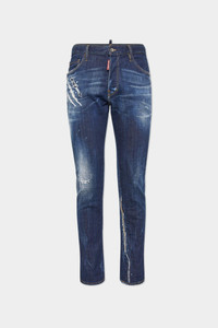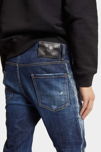 - PRODUCT ID: S74LB1559S30342470 - STRETCH DENIM 5 POCKET PANTS - WASH: USED WITH WEAR-AND-TEAR AND RIPS - SINGLE BUTTON WAISTBAND - LOGOED LABEL SEWN ON THE FLY - LEATHER LABEL SEWN ON THE BACK - CONTRASTING TWO-NEEDLE STITCHING - FIT: SLIM - MADE IN ITALY FABRIC 98% COTTON, 2% ELASTANE APPLICATION: 100% CALF LEATHER The Cool Guy Slim fit jean features specially created scuffs and stains. This model is recommended for looks with a rock soul and is easy to pair with leather garments.