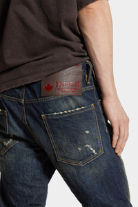 - PRODUCT ID : S74LB1760D30011470 - MADE FROM COTTON DENIM - DARK BLUE WASH - SLIM FIT - STRAIGHT LEG - FIVE-POCKET STYLE - DISTRESSED FINISH - DUSTY EFFECT - RUSTY METAL D - EMBROIDERED DEAN AND DAN LETTERING - RED DSQUARED2 LABEL - DSQUARED2 PATCH PRIMARY FABRIC: 100% COTTON; POCKET LINING: 65% POLYESTER, 35% COTTON Classic denim, but with attitude. These dark-wash jeans are toughened up with a dusty effect and a rusty metal D detail. Their straight-leg fit is perfectly proportioned to look good on everyone too.