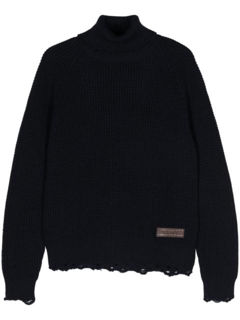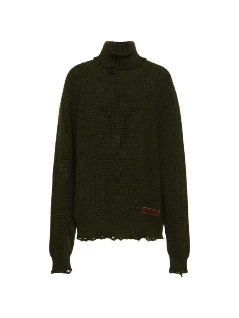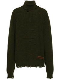 roll-neck wool jumper Highlights - Forest green - Wool - Knitted construction - Distressed finish - Roll neck - Long raglan sleeves - Ribbed cuffs and hem Made in Italy Composition Wool 100% SIZE & FIT Model measurements Height 6 ft 2 in(1.89 m) Bust/Chest 39.76 in(101 cm) Hips 37.4 in(95 cm) Waist 29.92 in(76 cm) FittingInformation Designed for a relaxed fit, this piece allows for comfort and movement when worn The ribbed hem offers a close, comfortable fit Made with a midweight knit, this piece offers some stretch This piece fits true to size – take your usual size