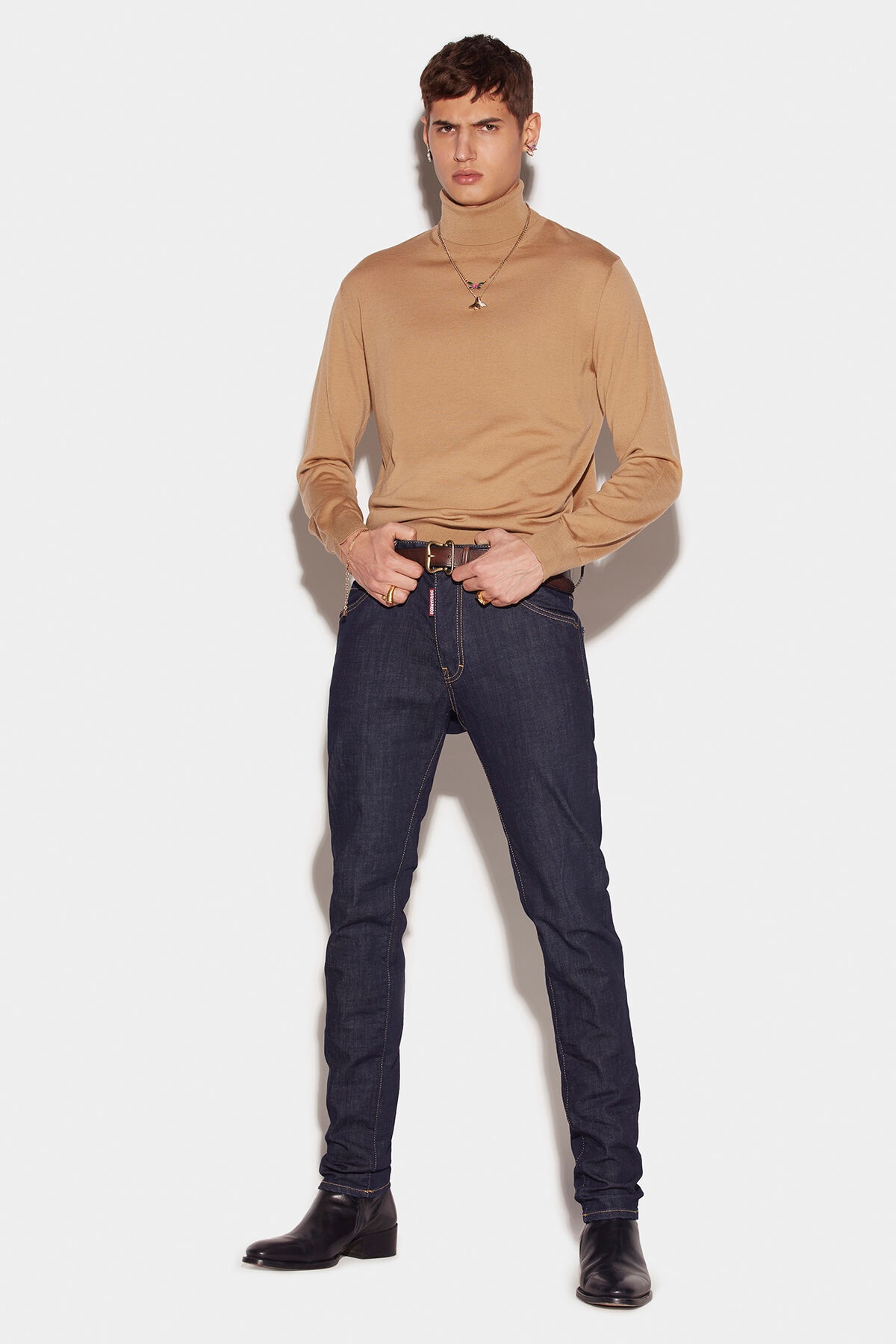 - PRODUCT ID: S74LB1134S30664470 - STRETCH COTTON DENIM JEANS - SLIM FIT - FIVE-POCKET STYLE - CONCEALED BUTTON FLY - LOGO TAG ON THE FLY - REAR LEATHER "DSQUARED2” PATCH - REAR LOOP - REAR "DSQUARED2 CERESIO 9, MILANO" PRINT - MADE IN ROMANIA MAIN FABRIC: 99% COTTON, 1% ELASTANE-SPANDEX. POCKET LINING: 65% POLYESTER, 35% COTTON. DETAIL: 100% LEATHER The model is 6'2" tall and wears a size 32 The Dark Rinse Wash Cool Guy Jeans are a must-have for this season. These jeans feature a bold “DSQUARED2 CERESIO 9, MILANO” print on the back pocket for a hint of Italian glamour. Pair with colourful, chunky shoes for an eye-catching look.