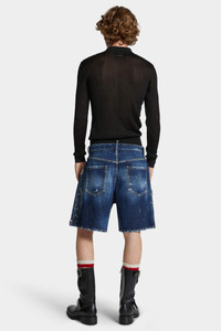 - MADE FROM STRETCH COTTON DENIM - DARK BLUE WASH - BAGGY FIT - FIVE-POCKET STYLE - DIAMANTE DETAILING - RED DSQUARED2 LABEL PRIMARY FABRIC: 99% COTTON, 1% ELASTANE-SPANDEX; POCKET LINING: 65% POLYESTER, 35% COTTON Everyday style but make it glam: cut with a baggy fit, these five-pocket denim shorts are enriched with delicate diamante detailing. Styled with elastic in the waistband for maximum comfort and flexibility too.