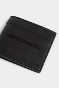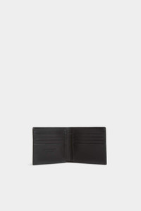 - MADE FROM LEATHER - EIGHT CARD SLOTS - CENTRAL NOTE COMPARTMENT - TONAL DSQUARED2 PRINT EXTERNAL MATERIAL: 100% CALFSKIN INTERNAL COMP: 100% CALFSKIN LINING: 100% COTTON Small, compact and super-sleek. This elegant wallet is crafted from soft black leather, featuring multiple inside card slots. Embellished with tonal Dsquared2 lettering across the front for a chic monocolour finish.