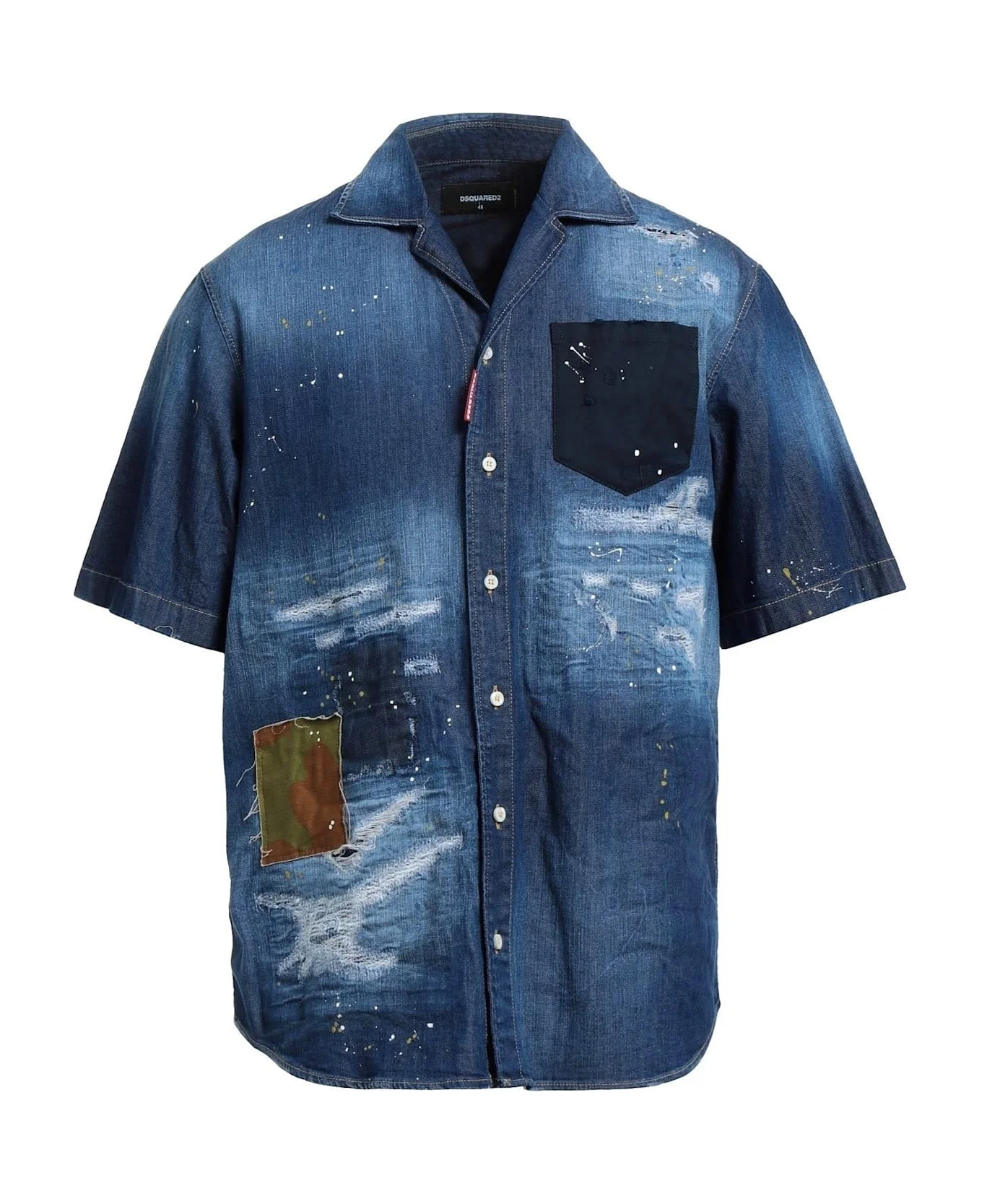 Composition: 98% Cotton 2% Elastane Front button closure Short sleeve Shirt collar Made in Italy Made in: Italy Color: Blue Model number: S71DM0530S30341470