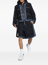 denim-trimmed tweed shorts
