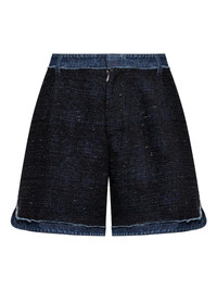 denim-trimmed tweed shorts Highlights - Dark blue - Tweed texture - Denim trim - Frayed edges - Zip fly - Button fastening Made in Italy Composition Polyester 100% Washing instructions Read Manufacturer Guidelines