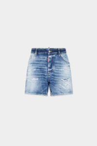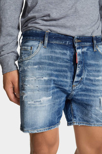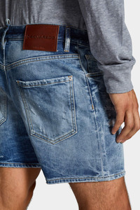 - MADE FROM STRETCH COTTON DENIM - LIGHT BLUE WASH - FIVE-POCKET STYLE - DISTRESSED FINISH - SPLATTERED DETAILING - RED DSQUARED2 LABEL - DSQUARED2 PATCH PRIMARY FABRIC: 99% COTTON, 1% ELASTANE-SPANDEX; POCKET LINING: 65% POLYESTER, 35% COTTON Embrace the worn-in look in these five pocket denim shorts, toughened up with rips, authentic whiskering effects and coloured splatters. Pair with ankle socks and chunky sneakers.
