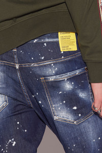 - PRODUCT ID: S74LB1193S30789470 - STRETCH COTTON DENIM JEANS - SLIM FIT - USED WASH WITH DESTROYED DETAILING AND COLOURED STAINS - FIVE-POCKET STYLE - CONCEALED BUTTON FLY - LOGO TAG ON THE FLY - REAR LOOP - REAR "DSQUARED2 DENIM DEPT” PATCH - DIMENSIONS: CROTCH 16.5 CM, LEG OPENING 22.7 CM, LENGTH 102 CM - MADE IN ROMANIA 92% COTTON, 6% ELASTERELL, 2% ELASTANE-SPANDEX. POCKET LINING: 65% POLYESTER 35% COTTON THE MODEL IS 6'2" TALL AND WEARS A SIZE 32 IF YOU LOVE A SCRUFFY CASUAL LOOK, THEN THE DARK RIPPED BLEACH WASH COOL GUY JEANS ARE GUARANTEED TO BE UP YOUR ALLEY. THIS DARK-WASH DENIM IS SCATTERED WITH A PAINT-SPLATTER DESIGN AND STRATEGIC RIPS FOR A “DON’T-CARE” ATTITUDE. PAIR WITH CHUNKY SHOES TO BE BANG ON TREND THIS SEASON.