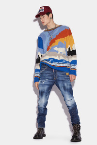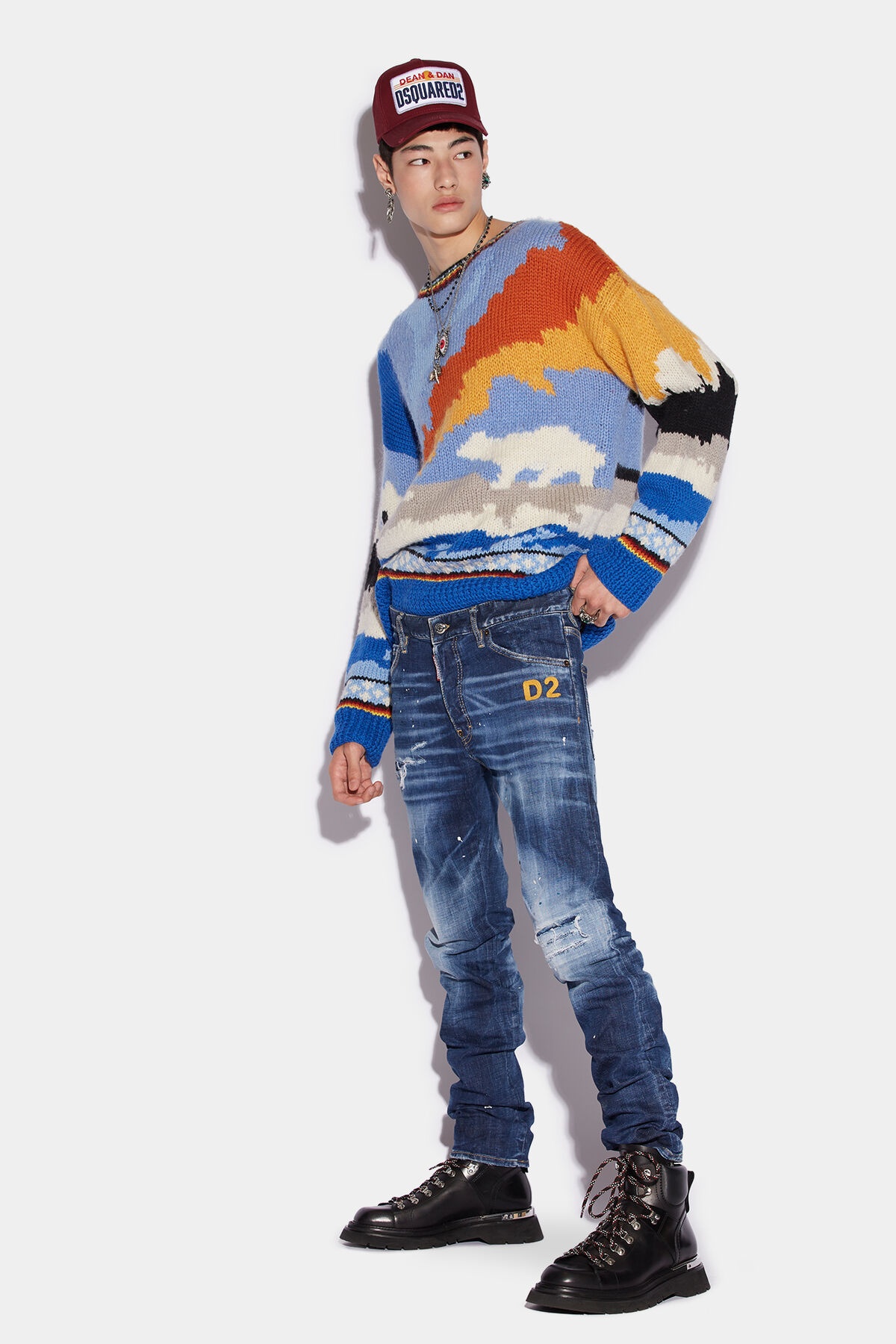 - PRODUCT ID: S71LB1113S30664470 - STRETCH COTTON BLEND DENIM JEANS - REGULAR FIT - FIVE-POCKET STYLE - USED WASH WITH DESTROYED DETAILING AND COLOURED STAINS - CONCEALED BUTTON FLY - LOGO TAG ON THE FLY - REAR LOOP - EMBROIDERED "1964 DSQUARED2" LETTERING ON THE BACK - EMBROIDERED "D2" LETTERING ON THE FRONT - DIMENSIONS: CROTCH 22.5 CM, LEG OPENING 16.5 CM, LENGTH 102 CM - MADE IN ITALY PRIMARY FABRIC: 99% COTTON, 1% ELASTANE-SPANDEX. POCKET LINING: 65% POLYESTER, 35% COTTON THE MODEL IS 6'2" TALL AND WEARS A SIZE 32 MAKE A STATEMENT WITH THIS PAIR OF MEDIUM HIKING WASH COOL GUY JEANS, DESIGNED IN A USED WASH AND FEATURING DESTROYED DETAILING AND COLOURED STAINS AND A FIVE-POCKET STYLE. THE BRAND'S SIGNATURE DSQUARED2 LOGO IS DISCREETLY DISPLAYED ON THE REAR LEATHER PATCH AS WELL AS THE 'D2' PRINT ON THE FRONT. FOR A CONTRAST WITH THE JEANS' SKINNY FIT PAIR WITH A MULTICOLOURED TOP FOR A RELAXED VIBE - PERFECT FOR CLUBBING OR CHILL NIGHTS IN.