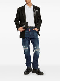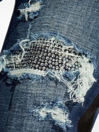distressed straight jeans Highlights - Blue - Concealed fly and button fastening - Classic five pockets - Belt loops - Rhinestone embellishment Made in Italy Composition Cotton 99%, Elastane 1%