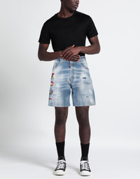 denim, faded, distressed, brand logo, solid color, medium wash, low-crotch, belt loops, button fastenings, multipockets, machine wash, do not bleach, do not tumble dry COMPOSITION 99% Cotton, 1% Elastane MEASUREMENTS Outside leg: 48.0 Inside leg: 20.0 Width at end: 33.0 Product code: 30343509ET