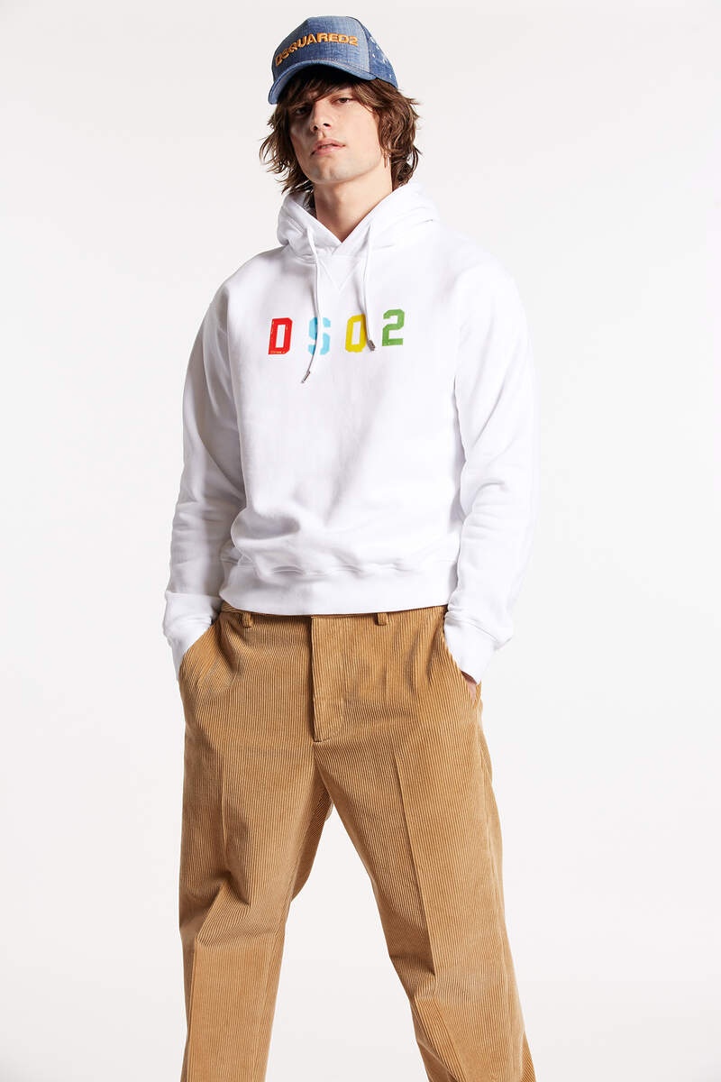 - PRODUCT ID: S74GU0729S25516100 - COTTON SWEATSHIRT - REGULAR FIT - DRAWSTRING HOOD - FRONT MULTICOLOURED "DSQ2" FLOCK PRINT - MADE IN ITALY PRIMARY FABRIC: 100% COTTON. SECONDARY FABRIC: 99% COTTON, 1% ELASTANE-SPANDEX.