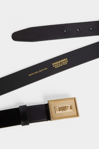 - PRODUCT ID : BEM066612900001M645 - MADE FROM LEATHER - GOLD DSQ2 BUCKLE - DEBOSSED LOGO ON THE TIP 100% CALF LEATHER; BUCKLE: 90% ZAMAK, 5% IRON, 5% BRASS Luxury, individuality and iconic style. This belt leaves its mark with a glossy gold plaque buckle, featuring raised DSQ2 lettering and an opulent trim. Made from sleek, super-smooth leather.