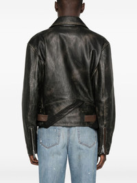 belted leather biker jacket Highlights - Black - Calf leather - Zip fastening - Belted waist - Zip pockets - Silver-tone hardware Imported Composition Outer: Calf Leather 100% Lining: Viscose 100% SIZE & FIT Model measurements Height 6 ft 0 in(1.84 m) Bust/Chest 37.79 in(96 cm) Hips 37 in(94 cm) Waist 31.49 in(80 cm) Washing instructions Specialist Cleaning