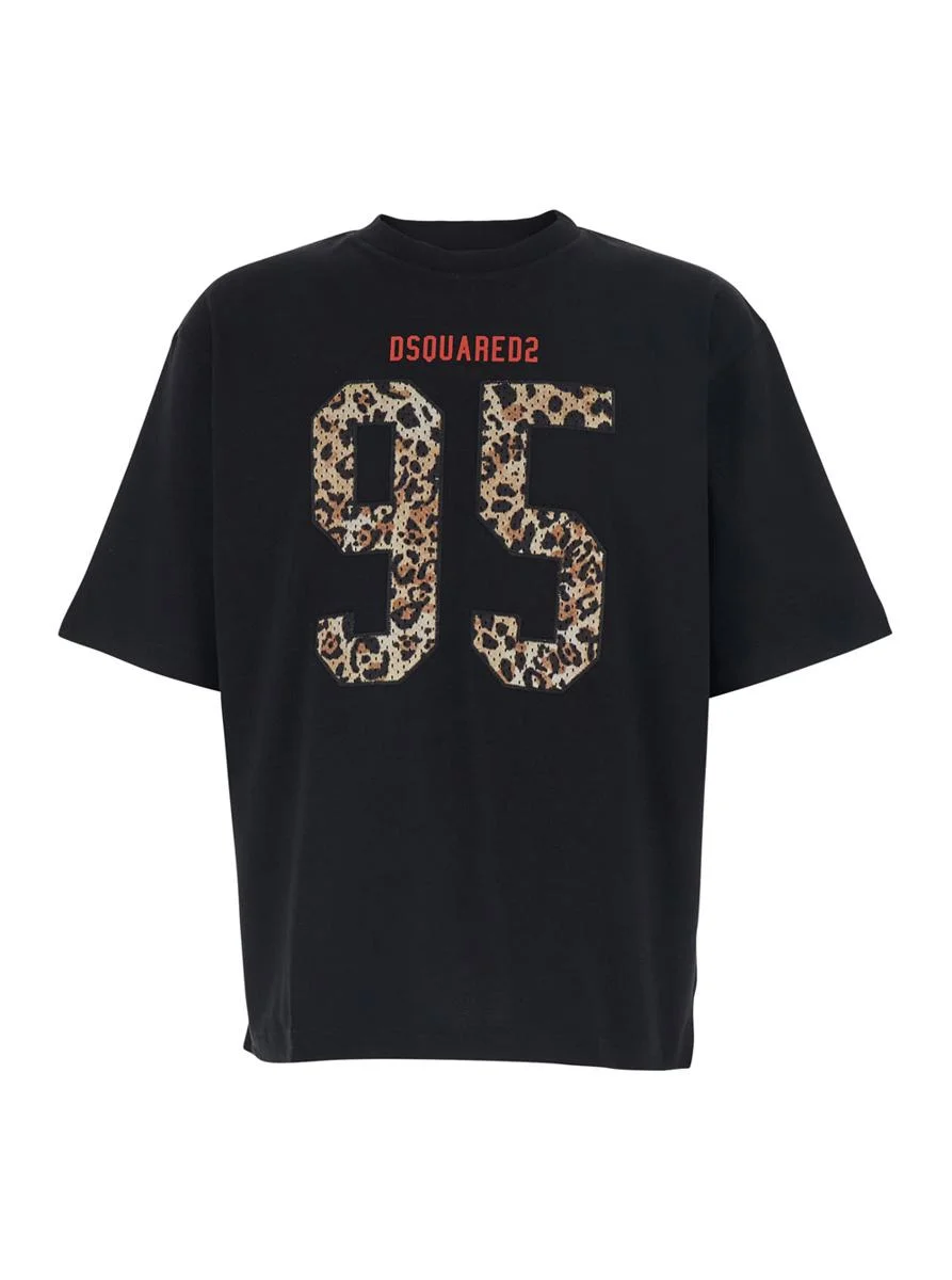 DSQUARED2 Black Crewneck T-Shirt With Maxi Logo On The Front In Cotton Man
