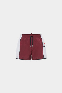 - MADE FROM LYCRA - MID-CUT BOXER STYLE - CONTRAST SIDE BANDS - ELASTICATED DRAWSTRING WAIST - SIDE DSQUARED2 MAPLE LEAF PRINT 92% POLYAMIDE, 8% ELASTANE From beach to bar, these mid-cut swim shorts have got you covered, flaunting a bold colour-block design with our signature maple leaf. Complete with a drawstring waist for maximum comfort and flexibility.
