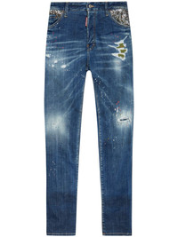 distressed straight jeans Highlights - Blue - Concealed fly and button fastening - Classic five pockets - Belt loops - Stud embellishment Made in Italy Composition Cotton 98%, Elastane 2%