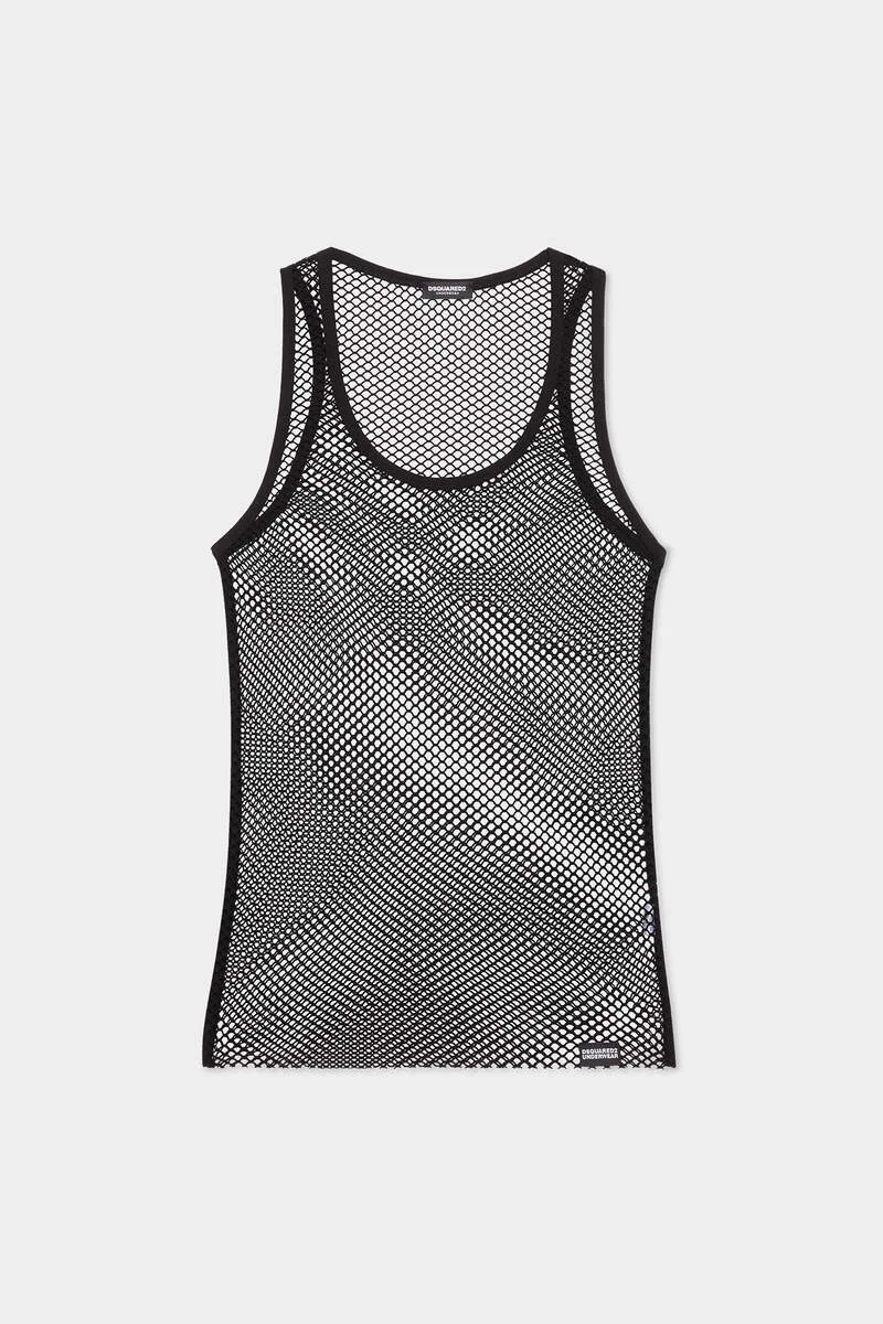- PRODUCT ID : D9D316100ISA01001 - MADE FROM WIDE MESH - SCOOP NECK - DSQUARED2 UNDERWEAR LABEL 95% POLYAMIDE-NYLON, 5% ELASTANE Sometimes less is more and this scoop-neck tank top is proof, made from wide open mesh that lets the body do all the talking. Wear as a base or by itself for an edgy evening look.