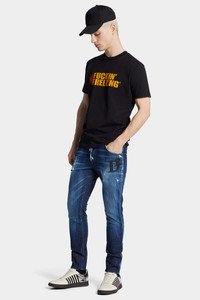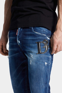 - PRODUCT ID : S74LB1721D30010470 - MADE FROM STRETCH COTTON DENIM - DARK BLUE WASH - SLIM FIT - FIVE-POCKET STYLE - DISTRESSED FINISH - WHISKERING EFFECTS - FRONT D2 PATCHES - RED DSQUARED2 LABEL