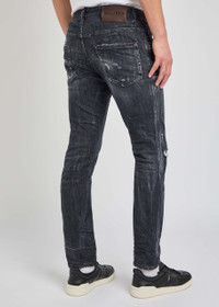 Info & Care Dsquared2 stretch-denim jeans Low-rise fit, skinny-leg cut, belt loops, five pockets, designer plaque at front and back, contrasting stitching, whiskered, ripped and painted details, distressed and faded finish Partially concealed button fastenings at front 92% cotton, 6% elastomultiester, 2% elastane Machine wash cold inside out to avoid colour transfer Size & Fit Front rise: 10 inches/ 25.5cm Inside leg length: 28.5 inches/ 72cm Midweight Model is 6'1"/ 185cm and wears a size IT48;