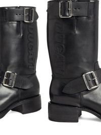 x Ducati leather biker boots Highlights - Black - Two buckle-strap fastenings - Side zip fastening - Round toe - Rubber sole Made in Italy Composition Sole: Rubber 100%, Calf Leather 100% Outer: Calf Leather 100% Lining: Calf Leather 100%