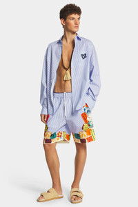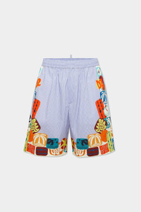 - PRODUCT ID : S78MU0060D35286001S - MADE FROM COTTON - CLASSIC PINSTRIPES - ELASTICATED WAIST - BACK BUTTONED WELT POCKETS PRIMARY FABRIC: 100% COTTON. POCKET LINING: 100% COTTON. From beach days to city strolls: sway into the warm weather in these boxer-style shorts. Smart pinstripes are juxtaposed with bright collage-style prints that intertwine D2 logos with emblems of summer. Styled with an elasticated waist for maximum comfort.