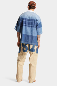● PRODUCT ID: S71LB1346S39021111 ● FIVE-POCKET STRETCH COTTON DRILL TROUSERS ● DENIM PATCH SEWN ON THE BACK ● BUTTONED WAISTBAND ● LOGO LABEL SEWN ON THE FLAP ● RIVETS SEWN TO THE CORNERS OF THE POCKETS ● TWIN-NEEDLE STITCHING ● LOOSE FIT ● MADE IN ITALY ● FABRIC: 97% COTTON, 3% ELASTANE/SPANDEX These five-pocket trousers are reinterpreted with a comfortable fit and characterised by denim inserts that form the brand logo. In short, a garment with a well-defined personality and which requires suitable pairings to balance the look as a whole. A white T-shirt or cropped tank top might be ideal.
