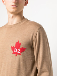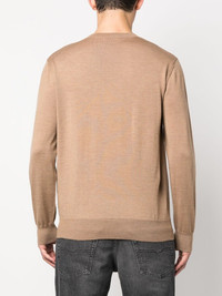 fine-knit crew-neck jumper Highlights - Almond beige - Virgin wool - Intarsia-knit logo - Ribbed edge - Crew neck - Long sleeves - Straight hem Made in Italy Composition Virgin Wool 100% SIZE & FIT Model measurements Height 6 ft 2 in(1.88 m) Bust/Chest 36.61 in(93 cm) Hips 37.79 in(96 cm) Waist 28.74 in(73 cm) FittingInformation Designed for a regular fit, offering a comfortable loose fit throughout the body Made with a midweight knit, this piece offers some stretch This piece fits true to size – take your usual size Washing instructions Dry Clean Only