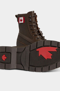 - PRODUCT ID: ABM0144003076988062 - COTTON AND LEATHER BOOTS - LABEL WITH CANADIAN FLAG SEWN ON SHAFT - LACE-UP - RUBBER LUG SOLE - LEATHER LINING - MADE IN PORTUGAL UPPER: 60% COTTON,40% CALF LEATHER/ LINING: 100% CALF LEATHER/ SOLE: 100% ELASTODIENE This lace-up ankle boot is inspired by Canadian outdoor style and is easy to pair with plaid jackets, flannel shirts, and pocketed pants or jeans. The beauty of adventure at every turn.