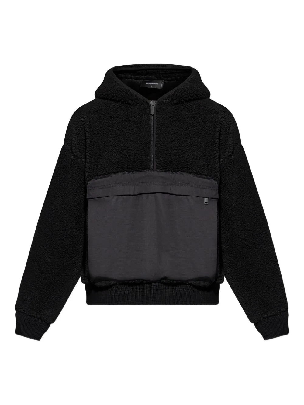 fleece hoodie Highlights - Black - Fleece texture - Half zip fastening - Front zip-fastening pocket - Ribbed cuffs and hem Made in Italy Composition Polyester 84%, Acrylic 16% Washing instructions Read Manufacturer Guidelines