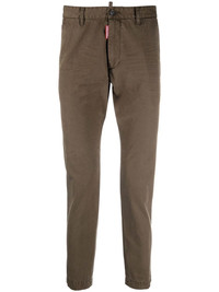 four-pocket cotton chinos khaki green cotton belt loops front button and zip fastening straight leg two side slit pockets two rear welt pockets Made in Italy Composition Outer: Cotton 100% Lining: Cotton 100% SIZE & FIT Model measurements Height 6 ft 2 in(1.87 m) Bust/Chest 38.18 in(97 cm) Hips 36.61 in(93 cm) Waist 29.13 in(74 cm) FittingInformation This piece fits true to size. We recommend you get your regular size Cut for a slim fit Made with a mid-weight non-stretch fabric Washing instructions Machine Wash