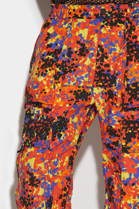 - PRODUCT ID: S74KB0787S76514002S - STRETCH COTTON CARGO TROUSERS - ALL-OVER MULTICOLOURED CAMOUFLAGE PRINT - BAGGY FIT - CONCEALED ZIP FLY AND BUTTON CLOSURE - ELASTICATED WAISTBAND - MULTI-POCKET STYLE - REAR LOOP - DIMENSIONS: CROTCH 31 CM, LEG OPENING 25 CM, LENGTH 105 CM - MADE IN ITALY PRIMARY FABRIC: 97% COTTON, 3% ELASTANE-SPANDEX. POCKET LINING: 100% COTTON These baggy fit camo trousers from Dsquared2 are the perfect blend of style and edge. The all-over vibrant multicolour camo print is eye-catching and bold, and the oversized side pockets that are adjustable with a drawstring create a layered effect that adds an extra touch of edginess. The low-crotched and high-waisted design gives these trousers a trendy, contemporary vibe. These trousers are perfect for dressing up or down, so pair them with chunky sneakers or boots for a casual, cool look