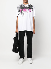 graphic-print logo T-shirt white/black/hot pink cotton graphic print to the front logo print to the front crew neck short sleeves straight hem Made in Italy Composition Cotton 100% SIZE & FIT Model measurements Height 6 ft 2 in(1.89 m) Bust/Chest 35.03 in(89 cm) Hips 38.18 in(97 cm) Waist 29.92 in(76 cm) FittingInformation This piece fits true to size. We recommend you get your regular size Cut for a loose fit Made with a mid-weight fabric Washing instructions Dry Clean Only
