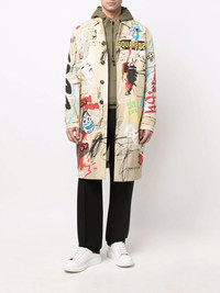 graphic-print single-breasted coat multicoloured cotton-blend all-over graphic print logo lettering button fastening long sleeves central rear vent Made in Italy Composition Outer: Cotton 97%, Spandex/Elastane 3% Lining: Cotton 100% SIZE & FIT Model measurements Height 6 ft 1 in(1.85 m) Bust/Chest 37.79 in(96 cm) Hips 37.4 in(95 cm) Waist 30.7 in(78 cm) Washing instructions Machine Wash