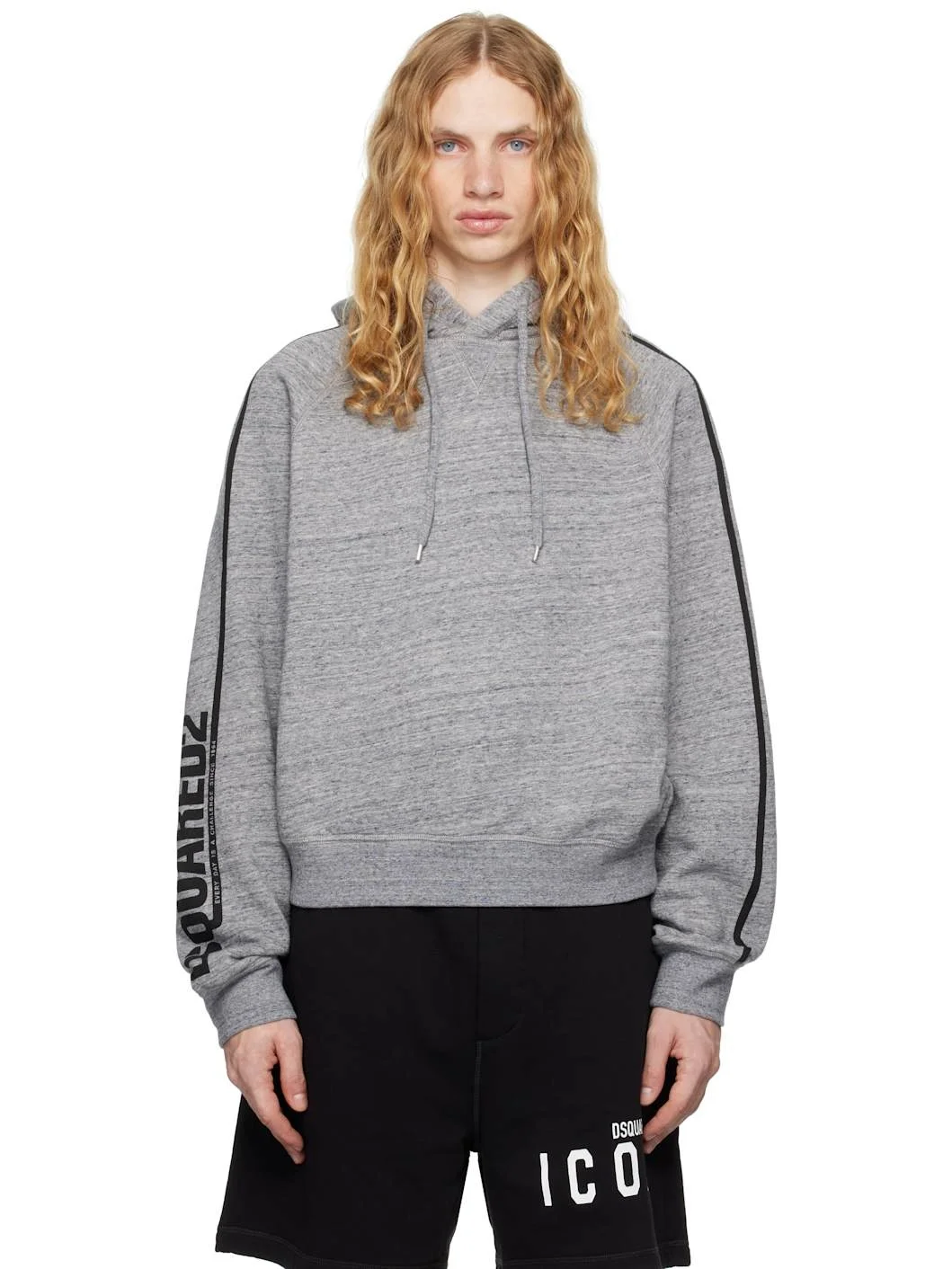 Cotton jersey hoodie. Fading throughout. · Drawstring at hood · Rib-knit hem and cuffs · Stripe at raglan sleeves · Logo printed at sleeve · Full fleece lining Supplier color: Grey Melange 100% cotton. Made in Italy 242148M202021